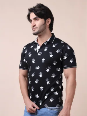 Men’s Casual Cotton Printed Polo Neck Half Sleeve T-Shirt