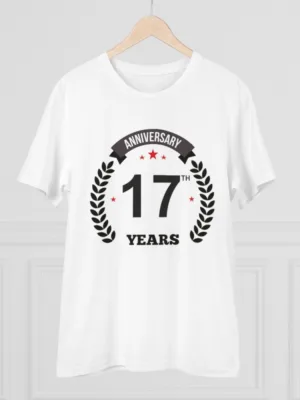 Generic Men’s PC Cotton 17th Anniversary Printed T Shirt (Color: White, Thread Count: 180GSM)