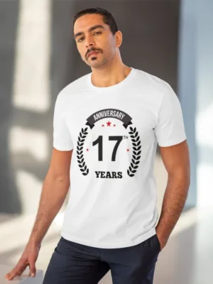 Men’s PC Cotton 17th Anniversary Printed T Shirt (Color: White, Thread Count: 180GSM)