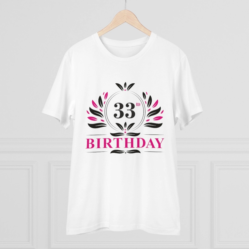 Men’s PC Cotton 33rd Birthday Printed T Shirt (Color: White, Thread Count: 180GSM)