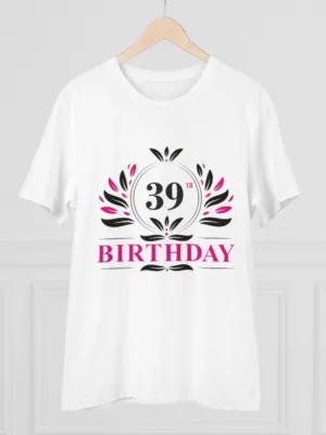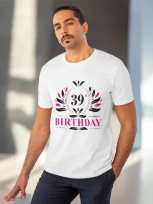 Men’s PC Cotton 39th Birthday Printed T Shirt (Color: White, Thread Count: 180GSM)
