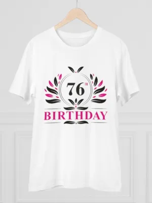 Men’s PC Cotton 76th Birthday Printed T Shirt (Color: White, Thread Count: 180GSM)