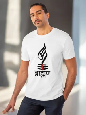 Men’s PC Cotton Brahman Printed T Shirt (Color: White, Thread Count: 180GSM)