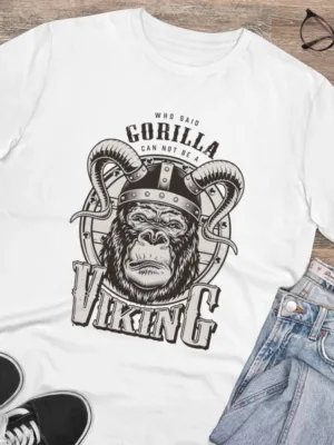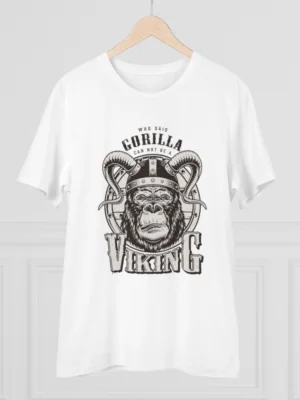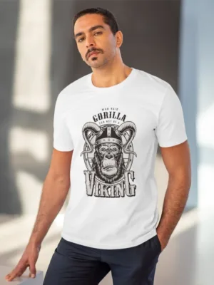 Men’s PC Cotton Gorila Desing Printed T Shirt (Color: White, Thread Count: 180GSM)