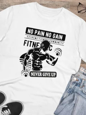 Men’s PC Cotton Gym No Pain No Gain Never Give Up Printed T Shirt (Color: White, Thread Count: 180GSM)