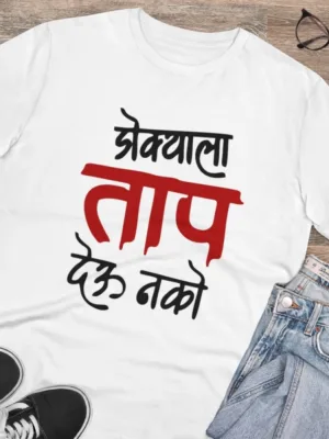 Men’s PC Cotton Marathi Desing Printed T Shirt (Color: White, Thread Count: 180GSM)