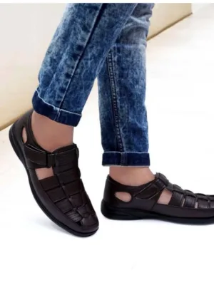 Men’s Casual Faux Leather Solid Velcro Sandal