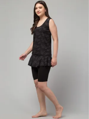 Generic Women’s Polyester Spandex Printed Slip On Round Neck Swimsuit Set (Black)
