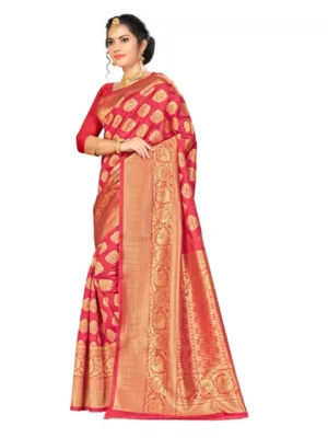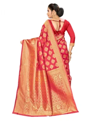 Generic Women’s Banarasi silk Saree with Blouse (Red, 5-6mtr),