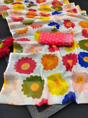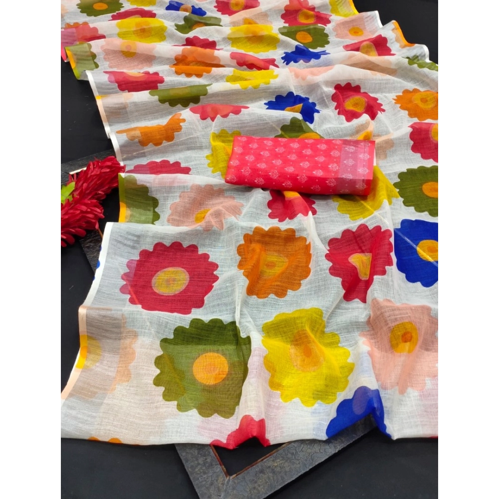 Women’s Cotton Linen Woven Design Saree With Unstitched Blouse 5.5Mtr