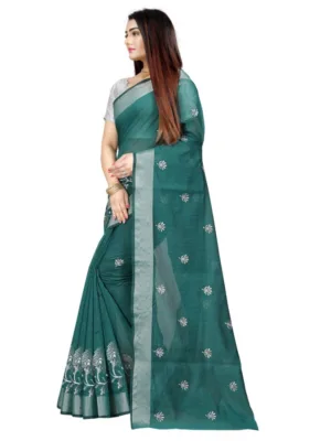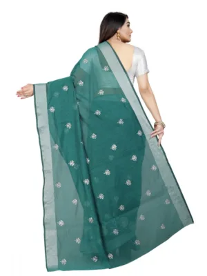 Women’s Cotton Silk Embroidered Saree With Unstitched Blouse