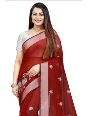 Women’s Cotton Silk Embroidered Saree With Unstitched Blouse