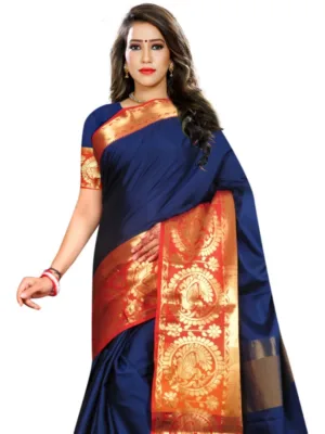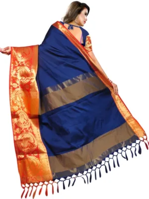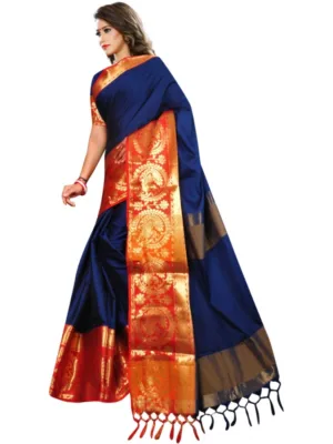 Generic Women’s Jacquard Woven Saree With Unstitched Blouse 5.5Mtr (Dark Blue)