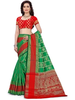 Women’s Jacquard Woven Saree With Unstitched Blouse