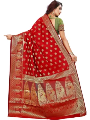 Generic Women’s Jacquard Woven Saree With Unstitched Blouse 5.5Mtr (Red)