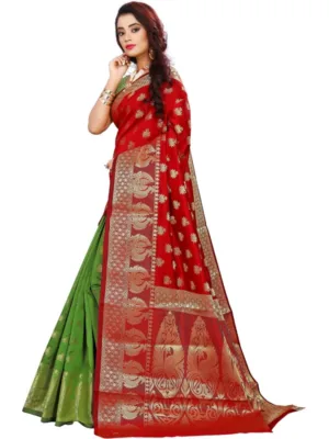 Women’s Jacquard Woven Saree With Unstitched Blouse