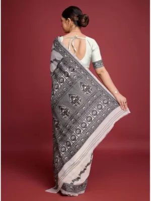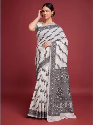 Women’s Jamdani Cotton Silk Printed Saree With Unstitched Blouse 5.5Mtr