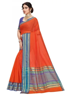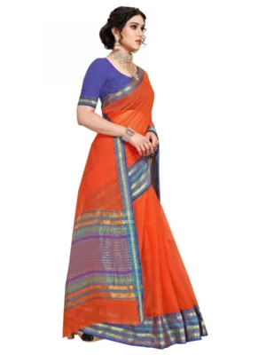 Women’s Kota Doria Cotton Bordered Saree With Blouse