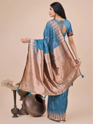 Women’s Linen Cotton Printed Saree With Unstitched Blouse 5.5Mtr
