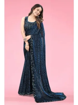 Be the first to review “Generic Women’s Lycra Floral Saree With Unstitched Blouse (Blue, 5.5 Mtr)”