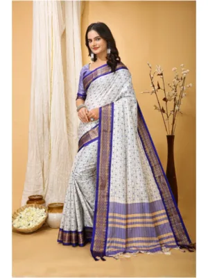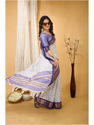 Women’s Soft Cotton Silk Printed Saree With Unstitched Blouse