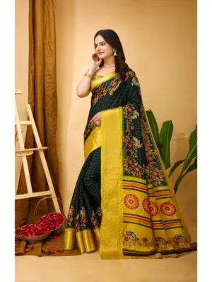 Women’s Soft Dola Cotton Kalamkari Printed Saree With Unstitched Blouse