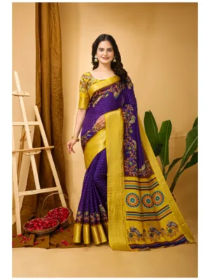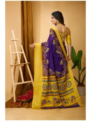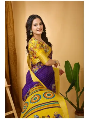 Women’s Soft Dola Cotton Kalamkari Printed Saree With Unstitched Blouse