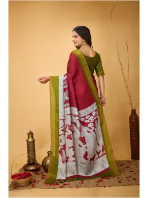 Women’s Soft Handloom Cotton Kalamkari Printed Saree With Unstitched Blouse