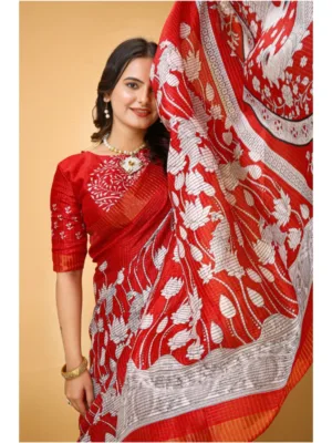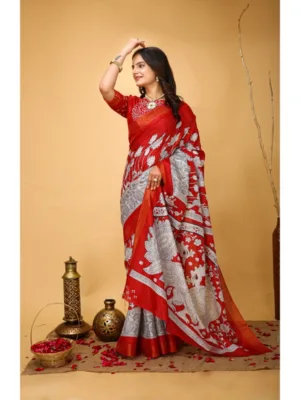 Women’s Soft Handloom Cotton Kalamkari Printed Saree With Unstitched Blouse