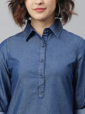 Women’s Denim Solid Long Sleeves Above Knee Dress