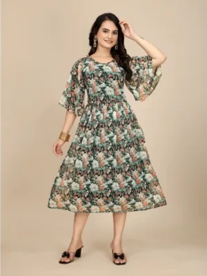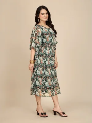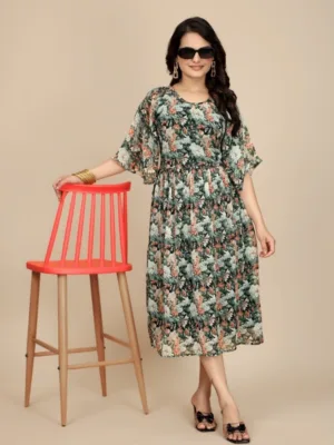 Women’s Georgette Printed Round Neck Short Sleeve Dress