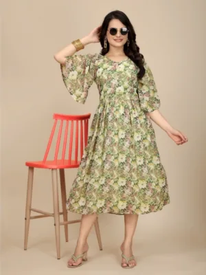 Women’s Georgette Printed Round Neck Short Sleeve Dress
