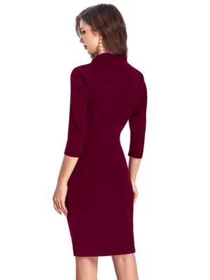 Generic Women’s Knitting stretchable Solid Round Neck 3-4th Dress (Maroon)