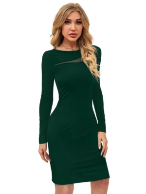 Women’s Knitting stretchable Solid Round Neck Full Sleeve Dress