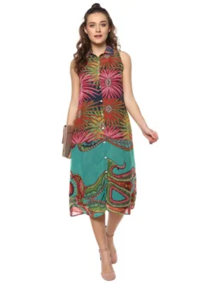 Women’s Polyester Floral Sleeveless Below Knee Dress