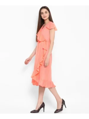 Women’s Polyester Ruffled Cap Sleeve Below Knee Dress