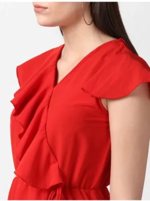 Women’s Polyester Ruffled Cap Sleeve Knee-Length Dress