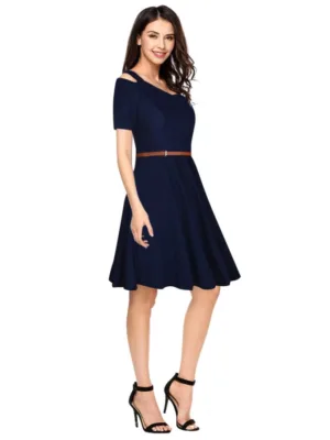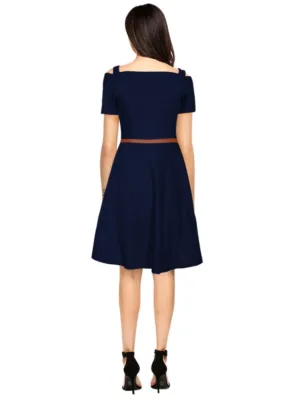 Women’s Polyester Solid V Neck Cap Sleeve Dress