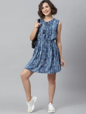 Women’s Rayon Tie & Dye Sleeveless Above Knee Dress
